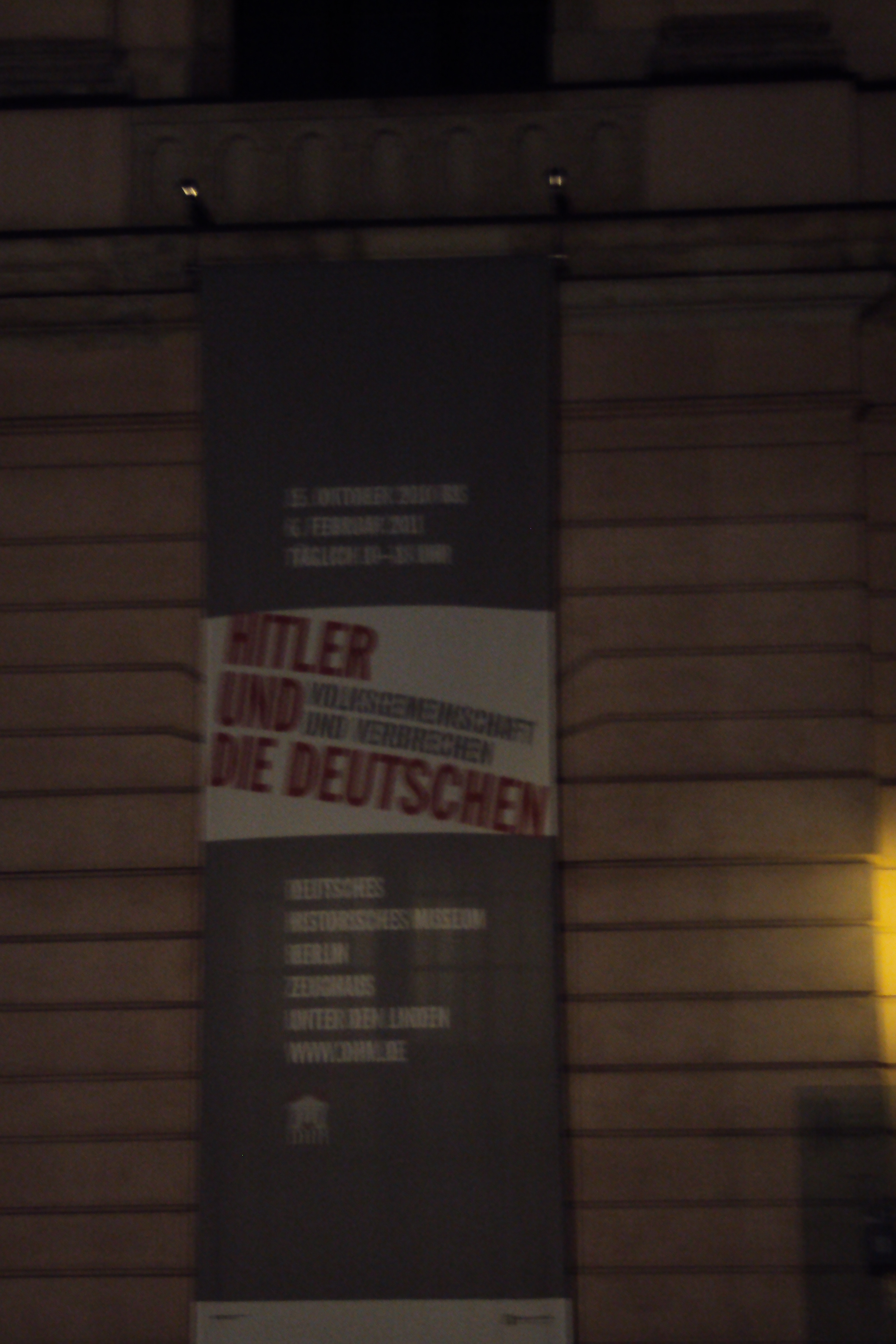 3) Much more publicised and extremely Controversial, but more “Dishonest” (in its Curation) is the Hitler Propaganda Exhibition at the German History Museum. Walking along the many arty streets, the only sign that the “World famous ” exhibition was there was a small banner, hung on the side of the building. If I had not accidentally noticed this banner in the dark, half an hour before closing time, I would not even know the exhibition was “Right here, now”.