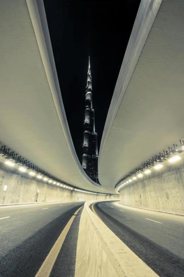 Burj Khalifa as seen from a tunnel. Photo by Sebastian Opitz.