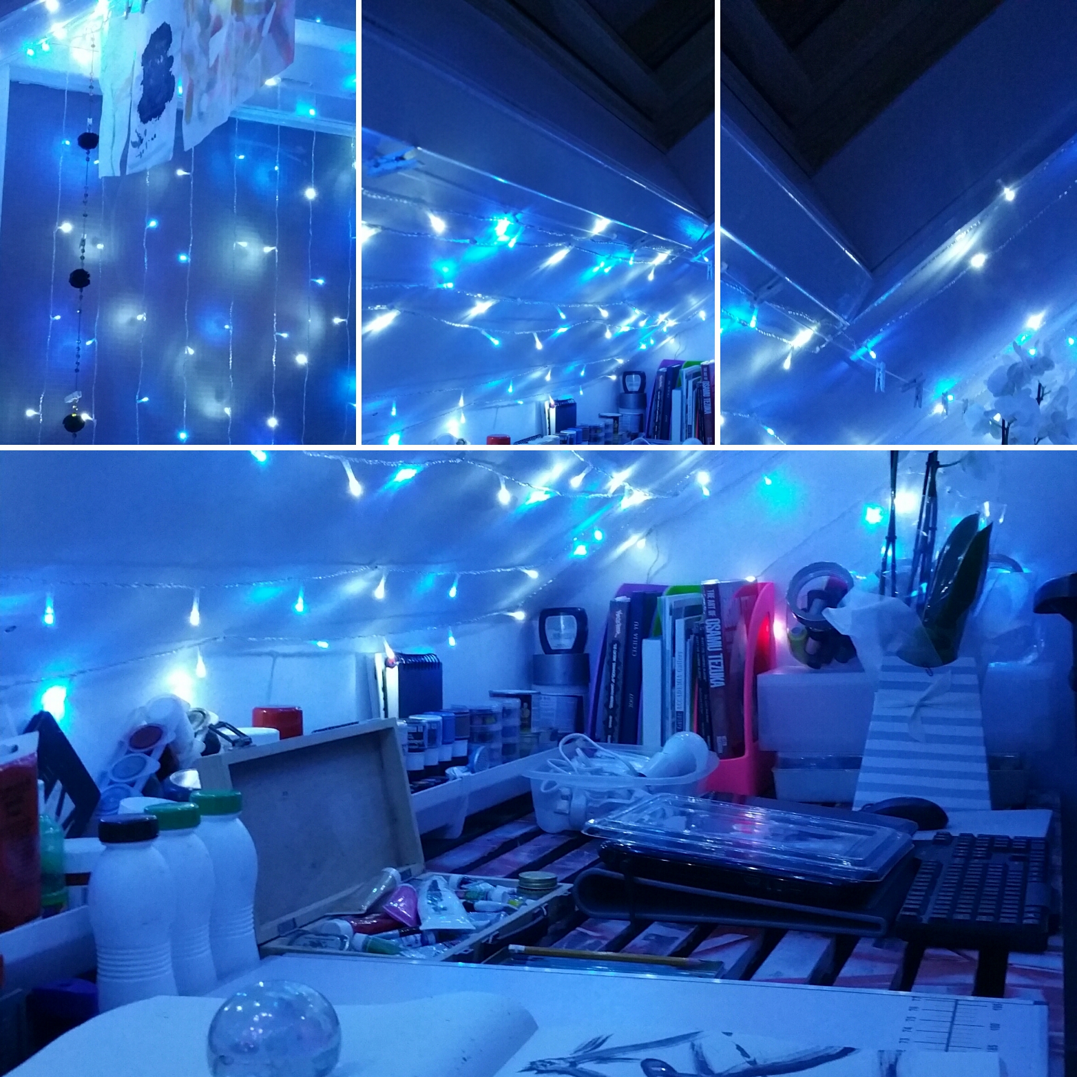 Here are a few photos of the space. I made a mistake with the fairy lights ordering far too many! Instead of getting 50 fairy lights…it was actually 50 metres of lights so the inside of the office looks like a spaceship when I switch on the light!