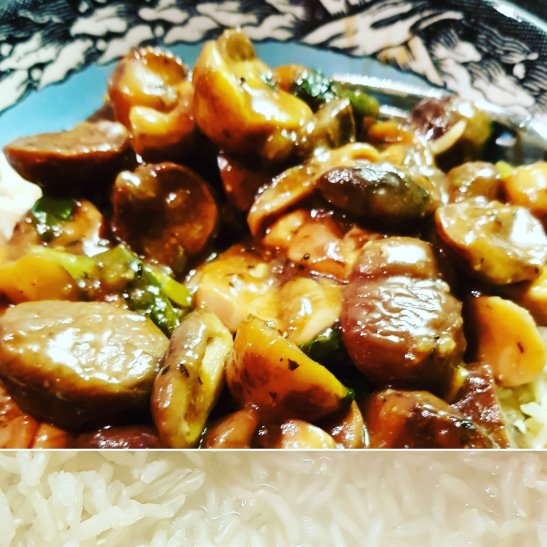 #Day5 Braised #Chestnuts #Organicchicken #shitakemushrooms #freshbasil in #ricewine and #darksoyasauce on #Brownrice 😎 #happychinesenewyear2020