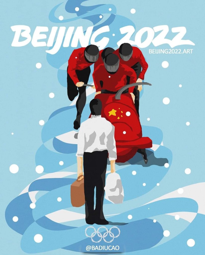 Yet it is a credit to Human ingenuity that Protest Arts still prevailed and found a way to be seen. For this reason, I would like to showcase the works by a Hong Kong born, Australia based protest artist named 巴丢草 badiucao ! His or her work can be seen in overseas International Media and featured in syndicated reports for Beijing Olympics worldwide.